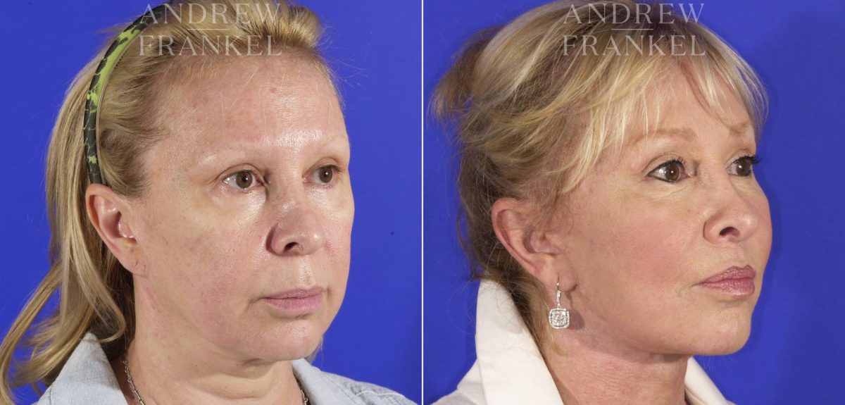 This woman initially came to me eleven years ago for facial rejuvenation. We developed a trusitng relationship and over a period of 10 years she underwent a facelift and midface lift and a lip lift to render this beautiful result. She is eleven years older in the after photos than in the before. Notice how natural and pretty she looks overall.